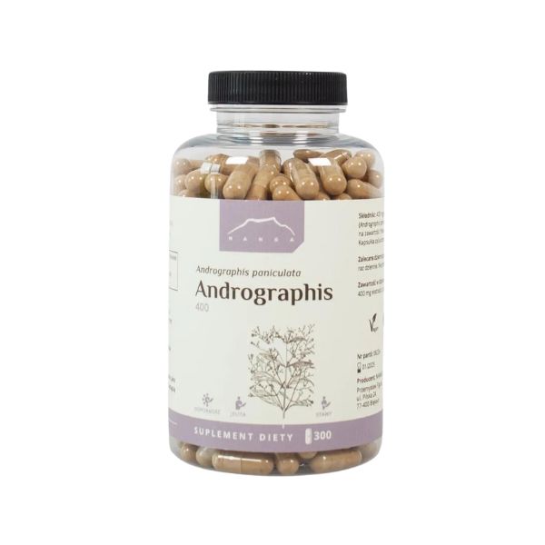 Andrographis w kapsułkach 400 mg – suplement diety przeznaczony do stosowania w okresach obniżonej odporności, stanowiący ekstrakt z Andrographis paniculata standaryzowany na 10% zawartości andrografolidów.