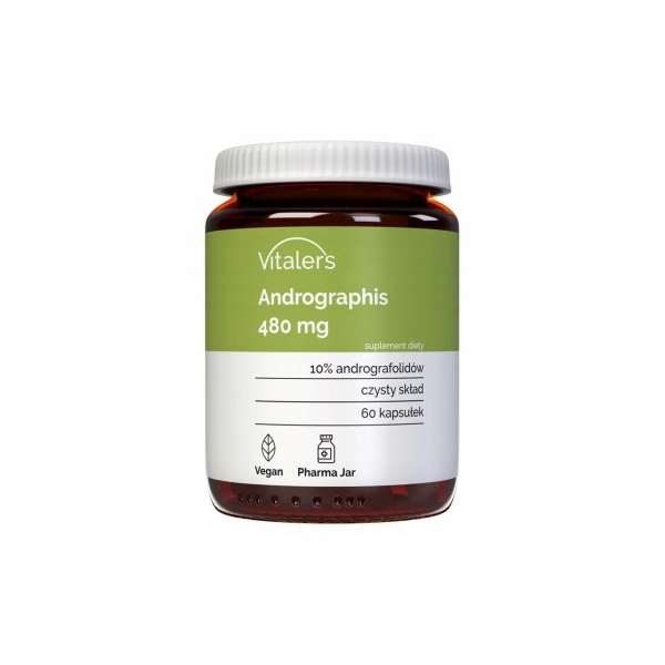 Każda kapsułka Vitaler's Andrographis jest odpowiednia dla wegan i zawiera 480 mg wyciągu z brodzuszki wiechowatej.