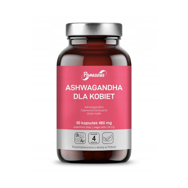 Produkt został stworzony ze szczególnym uwzględnieniem kobiecych potrzeb. Jest to wyjątkowe połączenie ashwagandhy w formie dwóch ekstraktów wzbogaconych o czerwoną koniczynę oraz liście czerwonych malin. Zawiera ekstrakt standaryzowany na zawartość witanolidów w wysokości 10% oraz ekstrakt z ashwagandhy 10:1.