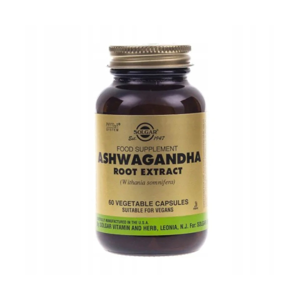 Ashwagandha Extract marki Solgar to suplement diety zawierający standaryzowany korzeń ashwagandhy, który zawiera 1.5% witanolidów.
