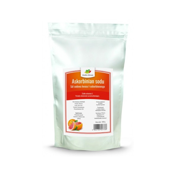 Askorbinian sodu (sól sodowa kwasu askorbinowego) to bezzapachowy, krystaliczny proszek o białej, czasem żółtawej barwie i lekko słonym smaku. Dobrze rozpuszcza się w wodzie. Znajduje zastosowanie w produkcji żywności, gdzie pełni rolę przeciwutleniacza, stabilizatora i regulatora kwasowości. Jest buforowaną formą witaminy C - jego odczyn jest mniej kwaśny w porównaniu do kwasu L-askorbinowego, dlatego szczególnie polecany jest osobom ze schorzeniami układu pokarmowego (m.in. żołądka) oraz problemami stomatologicznymi. Askorbinian sodu nie kumuluje się w organizmie, jego nadmiar wydalany jest wraz z moczem.