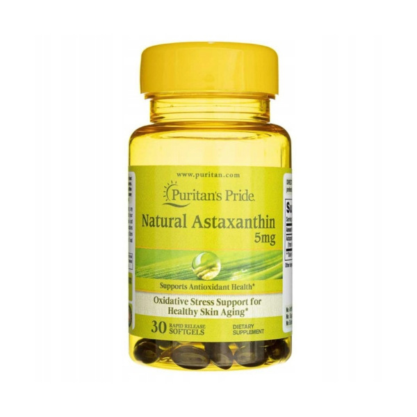 Natural Astaxanthin marki Puritan's Pride, to suplement diety w kapsułkach zawierający astaksatyne z Haematococcus pluvialis.