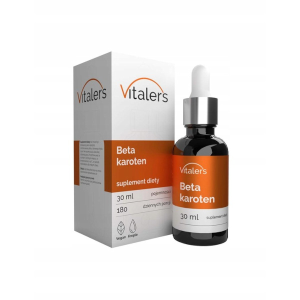 Beta karoten marki Vitaler's to suplement diety w kroplach zawierający Beta karoten. Witamina A pomaga w prawidłowym funkcjonowaniu układu odpornościowego, utrzymaniu prawidłowego widzenia oraz zachowaniu zdrowej skóry.