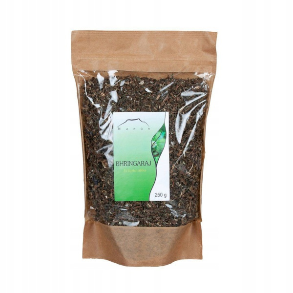 Bhringaraj (Eclipta alba) – tropikalne pnącze posiadające liście o podługowatym kształcie oraz drobne kwiaty podobne do stokrotek. Można spotkać je w Indiach, Chinach i Ameryce Południowej. Do celów zielarskich pozyskuje się całą nadziemną część rośliny. Zawiera ona laktony, ecliptynę, fitosterole, flawonoidy i naturalne barwniki (lawson i eumelaninę). Bhringa w języku hindi oznacza włosy, a raj – władcę lub pana. Nawiązuje to do działania Eclipta alba, która na wiele sposobów korzystnie wpływa na kondycję włosów. Dzięki preparatom z bhringaraj struktura włosa staje się grubsza, wzmocnione zostają cebulki włosowe, a skóra głowy zyskuje dobre odżywienie i nawilżenie. Wyciągi z tej rośliny można zastosować także do pielęgnacji delikatnych i wrażliwych części ciała – składniki aktywne łagodzą podrażnienia i zaczerwienienia, a ponadto nadają skórze delikatnie brązowej barwy. Produkt polecany jest szczególnie osobom posiadającym cienkie, słabe lub matowe włosy. Bhringaraj pomaga na nowo cieszyć się zdrową i gęstą fryzurą.