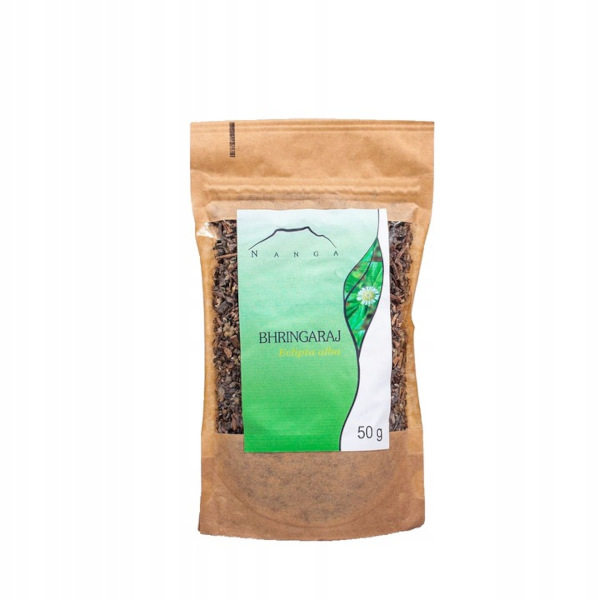 Bhringaraj (Eclipta alba) – tropikalne pnącze posiadające liście o podługowatym kształcie oraz drobne kwiaty podobne do stokrotek. Można spotkać je w Indiach, Chinach i Ameryce Południowej. Do celów zielarskich pozyskuje się całą nadziemną część rośliny. Zawiera ona laktony, ecliptynę, fitosterole, flawonoidy i naturalne barwniki (lawson i eumelaninę). Bhringa w języku hindi oznacza włosy, a raj – władcę lub pana. Nawiązuje to do działania Eclipta alba, która na wiele sposobów korzystnie wpływa na kondycję włosów. Dzięki preparatom z bhringaraj struktura włosa staje się grubsza, wzmocnione zostają cebulki włosowe, a skóra głowy zyskuje dobre odżywienie i nawilżenie. Wyciągi z tej rośliny można zastosować także do pielęgnacji delikatnych i wrażliwych części ciała – składniki aktywne łagodzą podrażnienia i zaczerwienienia, a ponadto nadają skórze delikatnie brązowej barwy. Produkt polecany jest szczególnie osobom posiadającym cienkie, słabe lub matowe włosy. Bhringaraj pomaga na nowo cieszyć się zdrową i gęstą fryzurą.