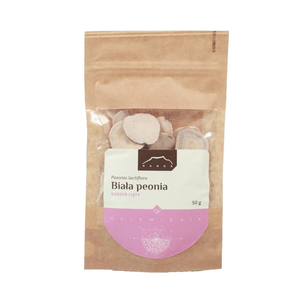 Piwonia biała (Paeonia lactiflora) – zwana też piwonią chińską, to roślina o masywnych, bulwiastych korzeniach oraz pięknych, okazałych kwiatach zwykle barwy białej. Powszechnie można spotkać ją w Chinach i Ameryce Północnej. Głównym surowcem pozyskiwanym z piwonii białej jest jej korzeń, zawierający szereg cennych substancji bioaktywnych, m.in. peoniflorynę. W Chinach, Japonii oraz w Korei piwonia biała jest chętnie uprawiana ze względu na walory ozdobne, zdrowotne, a także kulinarne. Według wschodniej medycyny tradycyjnej korzeń piwonii działa regulująco na cykl miesiączkowy oraz koi napięcie związane z menstruacją. Paeonia lactiflora to także bogactwo antyoksydantów, które dodatkowo wspierają naturalną odporność, poprawiają wygląd skóry oraz optymalizują odpowiedź przeciwzapalną organizmu. Piwonia biała świetnie sprawdzi się jako środek regulujący intensywność krwawień miesiączkowych oraz łagodzący napięcie narządów wewnętrznych.