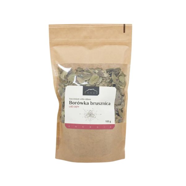 Borówka brusznica (Vaccinium vitis-idaea) – znana także pod nazwą borówka czerwona, to niska krzewinka o drobnych, zimozielonych liściach, wytwarzająca latem soczyście czerwone owoce. Porasta torfowiska, wrzosowiska i lasy iglaste. Występuje na chłodniejszych obszarach Europy, Azji i Ameryki Północnej. W celach zielarskich pozyskuje się liście i dojrzałe owoce borówki. Liście zawierają takie substancje czynne, jak: flawonoidy (m.in. izokwercyna i arbutyna), garbniki, kwasy organiczne i sole mineralne. Owoce są niezwykle popularne w kuchni skandynawskiej, ale u nas również można spotkać je w potrawach mięsnych lub na słodko. W Polsce liście borówki chętnie wykorzystywane są do dekorowania wielkanocnych koszyczków. Jednak najważniejszym atutem tej rośliny jest jej korzystny wpływ na zdrowie. Napary oraz wyciągi z borówki brusznicy skierowane są do osób pragnących zadbać o swój układ moczowy oraz wesprzeć procesy trawienne w przewodzie pokarmowym.