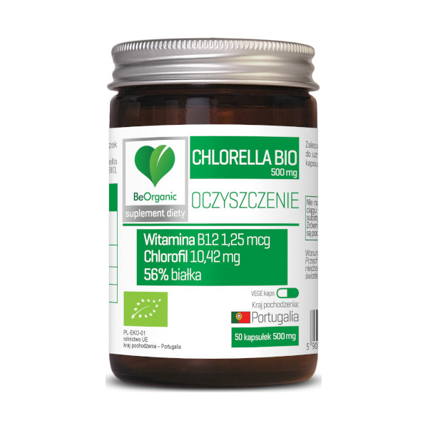 Najważniejsze informacje BeOrganic Chlorella BIO 500 mg x 50 kaps