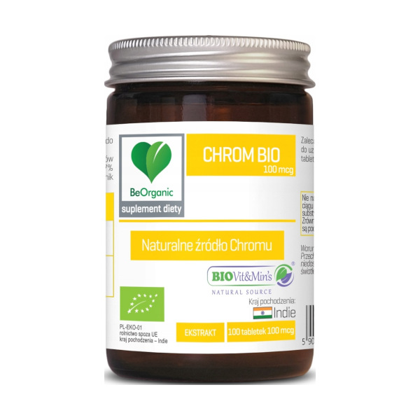 BeOrganic Chrom BIO to wysoka dawka 100 µg naturalnego chromu, w postaci mieszanki ekologicznych ekstraktów BIOVit&Min’s® z pietruszki (Petroselinum crispum) i z liści curry (Bergera koenigii). Ekstrakt BIOVit&Min’s® spełnia wysokie standardy żywności ekologicznej. W procesie ekstrakcji nie są stosowane żadne sztuczne rozpuszczalniki ani chemikalia.