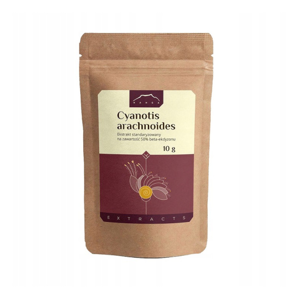 Cyanotis arachnoides to roślina, którą coraz bardziej interesują się sportowcy i kulturyści, ponieważ zawiera w swoim składzie ekdysteroidy, czyli związki, które zwiększają tempo anabolizmu mięśniowego, bez podnoszenia poziomu testosteronu. Dodatkowo regulują gospodarkę glukozy i lipidów. Mają też wpływ na procesy zapalne i reakcje autoimmunologiczne w organizmie. Ekdysteroidy występują naturalnie w niektórych roślinach i w organizmach bezkręgowców. Korzeń cyanotis zawiera ich bardzo dużo, bo aż 4-5%.Cyanotis arachnoides nie był wykorzystywany w medycynie tradycyjnej Europy, dlatego nie może mieć statusu suplementu. Poza Europą jest jednak szeroko stosowany i tak popularny w Azji i w USA, żę rynek chiński oferuje zakup ekstraktu z cyaontis w ilości minimum 1 kg. Roślinę tę polubili azjatyccy sportowcy pod koniec ubiegłego wieku i z wielkim powodzeniem stosują ją do dziś. W polskim artykule o ekdyzonach roślinnych przytoczono badanie, w którym testowano wpływ 20-hydroksyekdyzonu, głównego składnika aktywnego cyanotis, w połączeniu z białkiem na masę mięśniową regularnie trenujących kobiet i mężczyzn. Po 10 dniach uczestnicy przyjmujący białko z dodatkiem tego związku mieli aż o 7% więcej beztłuszczowej masy ciała i o 10% mniej tkanki tłuszczowej.W Tradycyjnej Medycynie Chińskiej wykorzystywany był w celu poprawy krążenia krwi, wzmocnienia mięśni i stawów oraz w leczeniu reumatyzmu.