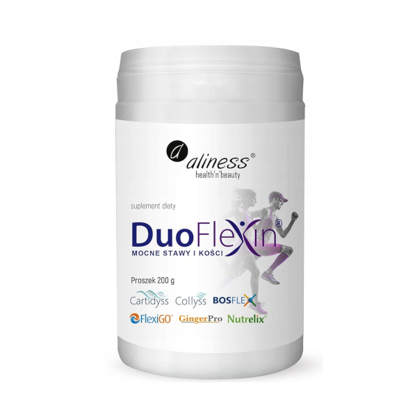 Duoflexin® posiada dwa rodzaje kolagenu pochodzenia rybiego – występujący naturalnie w ścięgnach i kościach kolagen typu I Collyss™ oraz kompleks kolagenowy CARTIDYSS™, zawierający w swoim składzie kolagen typu II – naturalnie występujący w chrząstce stawowej, a także naturalną chondroitynę i glukozaminę, wzmocnione dodatkową porcją niskocząsteczkowego kwasu hialuronowego o wysokiej przyswajalności oraz proteinami ze śluzu ślimaka. Ponadto kompozycję wzbogacono o synergistycznie działające składniki: