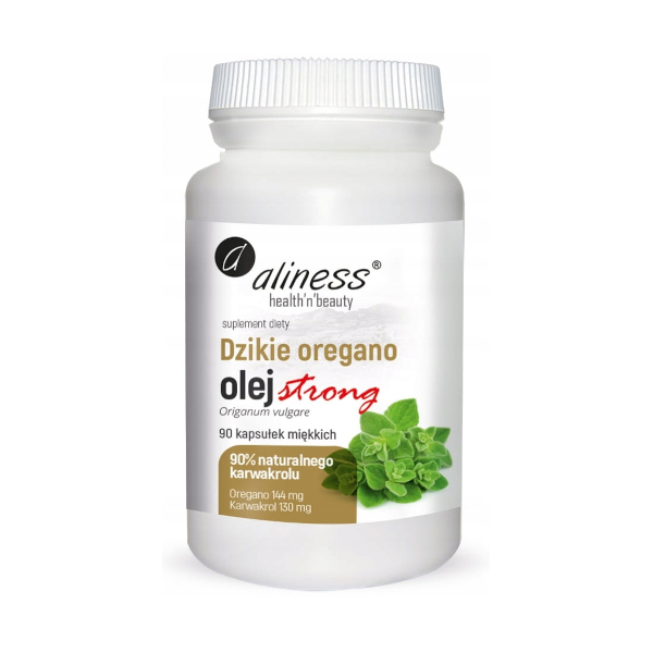 Aliness Dzikie Oregano Olej Strong to w 100% naturalny olej z oregano o wysokiej zawartości 90% karwakrolu. Produkt zawiera wyłącznie naturalny karwakrol, a tak wysokie stężenie uzyskano dzięki zastosowaniu jedynie fizycznego procesu rektyfikacji, czyli frakcjonowania w oparciu o względną lotność składników oraz dzięki wykorzystaniu odpowiednich części najwyższej jakości roślin.