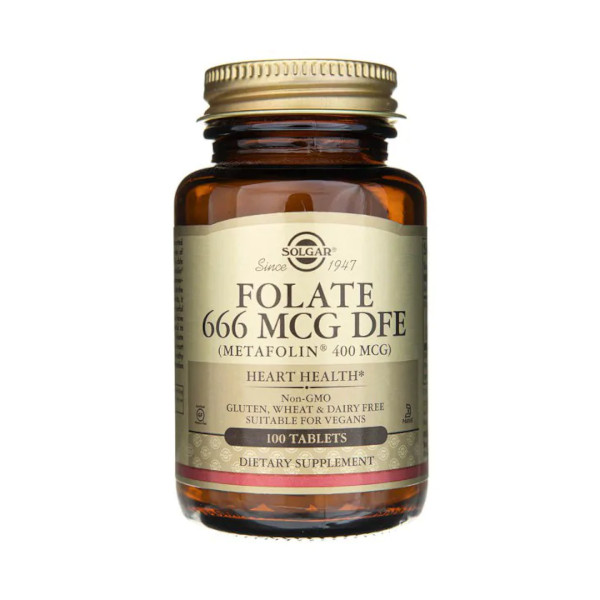 Folate marki Solgar to suplement diety zawierające foliany w postaci L-metylofolan wapnia jako Metafolin®.