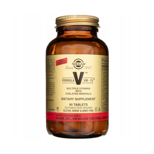 Formula V VM-75 marki Solgar to suplement diety zawierający schelatowane witaminy i minerały.