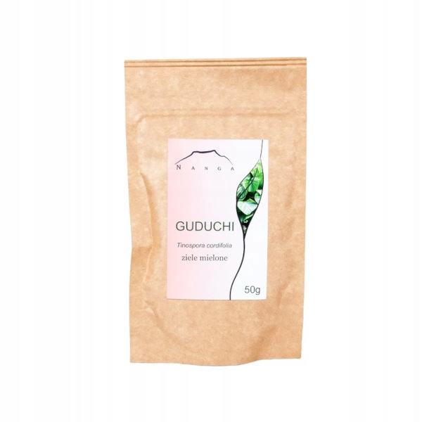 Guduchi (Tinospora cordifolia) – nazywane także amrita lub giloy, to tropikalne pnącze o sercowatych liściach i czerwonych owocach, osiągające do 15 metrów długości. Najczęściej spotykane jest w Indiach i na Sri Lance. W zielarstwie wykorzystywane są różne części tej rośliny: ziele, liście, korzenie i pędy. Amrita to bogactwo substancji bioaktywnych, takich jak: alkaloidy, lignany, steroidy, laktony, glikozydy, sekswiterpeny oraz polisacharydy. Zwyczajowe nazwy tego egzotycznego pnącza oznaczają „chroniące organizm” lub „boski nektar”, co nawiązuje do jego niezwykłych właściwości prozdrowotnych. Od tysięcy lat jest ono szeroko stosowane we wschodniej medycynie tradycyjnej, zwłaszcza w Indiach. Według Ajurwedy Tinospora cordifolia odżywia i regeneruje organizm, dodaje witalności, a także wyraźnie wzmacnia odporność. Wielokierunkowość działania sprawia, że całe ciało zyskuje mocy i siły. Spożywanie guduchi jest szczególnie zalecane osobom pragnącym wesprzeć funkcjonowanie górnych dróg oddechowych, zwłaszcza w okresie pylenia różnych roślin.