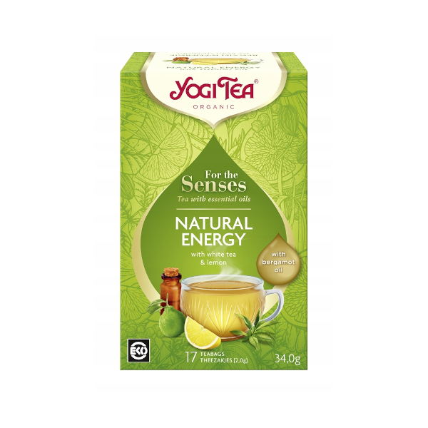 YOGI TEA® NATURAL ENERGY z pikantną bergamotką i olejkiem cytrynowym, z najwyższej jakości białą i zieloną herbatą jest idealną towarzyszką na pełen działania dzień.