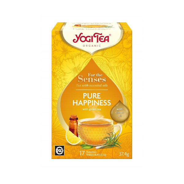 YOGI TEA® Czysta radość PURE HAPPINESS wznosi wrażliwość naszych zmysłów na wyższy poziom dzięki olejkom eterycznym orzeźwiającej trawy cytrynowej i kwaskowej cytryny.