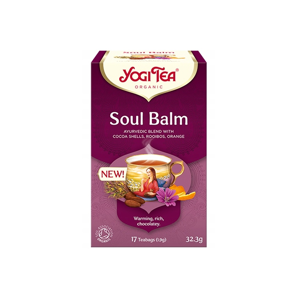 Gdy nie wszystko układa się po Twojej myśli, balsam dla duszy YOGI TEA® znakomicie się sprawdzi – to herbata, przy której Twoja dusza odpocznie. Cudowny zapach łupin kakao sprawia, że serce bije mocniej. W połączeniu z łagodnym i słodkim smakiem Rooibos i owocowymi nutami pomarańczy herbata ta wyczaruje uśmiech na Twojej twarzy.