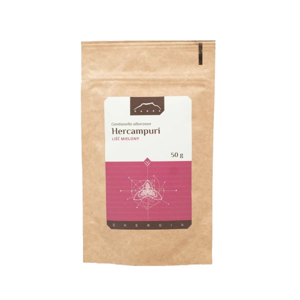 Hercampuri (Gentianella alborosea) – niewielka roślina rosnąca wysoko w peruwiańskich Andach. Charakteryzuje się pięciopłatkowymi kwiatami i wąskimi liśćmi. Często występuje w większych skupiskach, tworząc purpurowe krajobrazy. Głównymi substancjami aktywnymi zawartymi w hercampuri są: terpenoidy, seskwiterpenoidy, flawonoidy, sterole roślinne, saponiny, taniny, żywice, ksantony oraz olejki eteryczne. Ziele Gentianella alborosea od setek lat powszechnie stosowane jest przez mieszkańców Ameryki Południowej. Dba o dobrą kondycję wątroby, wspiera prawidłowe trawienie oraz procesy oczyszczania organizmu. Zawarte w nim związki czynne pomagają utrzymać korzystny profil lipidowy, co sprzyja redukcji masy ciała. Dodatkowo napary lub odwary z hercampuri przynoszą ulgę w przypadku uczucia ciężkości po posiłku oraz wzmacniają osłabioną wątrobę.