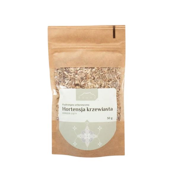 Hortensja krzewiasta (Hydrangea arborescens) – rozłożysty, gęsty krzew o dużych, sercowatych liściach i drobnych kwiatach, zebranych w kuliste kwiatostany. Pochodzi ze wschodnich obszarów Ameryki Północnej. Obecnie ceniony jest w różnych zakątkach świata za swoje walory ozdobne. Surowcem zielarskim jest korzeń hortensji, zawierający takie związki aktywne, jak: flawonoidy (kwercytyna, kemferol), glikozydy, saponiny oraz olejki lotne. Kompozycja tych substancji pozytywnie wpływa na funkcjonowanie układu moczowego oraz wspomaga organizm w oczyszczaniu nerek i dróg moczowych z niekorzystnego osadu. Rdzenni mieszkańcy Ameryki Północnej z plemienia Cherokee dobrze znali właściwości hortensji. Wykorzystywali ją jako środek ułatwiający oddawanie moczu oraz dbający o zdrowie prostaty. Korzeń Hydrangea arborescens wykazuje ponadto działanie antyseptyczne, dzięki któremu wspiera organizm w okresach narażenia na infekcje, szczególnie tych dotyczących układu moczowego.