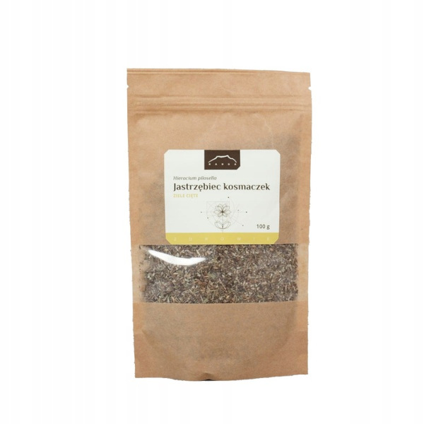 Jastrzębiec kosmaczek (Hieracium pilosella) – nazywany dawniej niedośpiałkiem, to niewielka roślina o podłużnych liściach zebranych w odziomkową różyczkę. Jastrzębiec posiada proste łodygi, na szczycie których znajdują się żółte koszyczki kwiatowe. Występuje na suchych glebach w Europie i Azji Zachodniej. Surowcem zielarskim jest cała nadziemna część rośliny, zawierająca takie składniki aktywne, jak: flawonoidy, laktony seskwiterpenowe, kumaryny, garbniki, śluzy, sterole roślinne oraz wielocukry o korzystnym wpływie na mikroflorę jelitową. Jastrzębiec kosmaczek znany jest od setek lat w rosyjskiej medycynie tradycyjnej jako wspaniały środek dbający o zdrowie układu pokarmowego. We współczesnej fitoterapii także ceniony jest za swój korzystny wpływ na trawienie. Warto wypróbować go, gdy czujemy się przeciążeni po posiłku lub w okresie osłabionej przemiany materii.