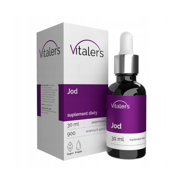 Jod marki Vitaler's to suplement diety w kroplach zawierający jod w formie jodku potasu. Jod pomaga w prawidłowej produkcji hormonów tarczycy i w prawidłowym funkcjonowaniu tarczycy.
