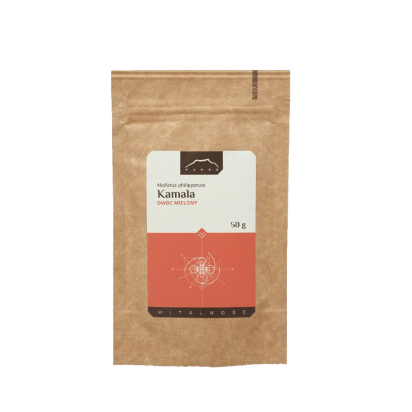 Kamala (Mallotus philippensis) – drzewo porastające ciepłe i wilgotne lasy Azji i Australii. Wytwarza lśniące, lancetowate liście oraz charakterystyczne, czerwone owoce. Kamalą nazywany jest także pył pokrywający otoczki nasion tej rośliny. Stanowi on cenny surowiec zielarski oraz stosowany jest w kosmetyce jako składnik naturalnych farb do włosów, nadający soczystej, czerwonej barwy. Już setki lat temu w naturalnej medycynie Dalekiego Wschodu kamala służyła do wspierania organizmu w walce z pasożytami. Współczesne badania potwierdzają słuszność takiego zastosowania. Głównymi składnikami aktywnymi obecny w kamali są pochodne floroglucyny (rottleryny), które wzmagają mechanizmy obronne skierowane wobec większych robaków, ale nie tylko. Kamala pomaga także oczyścić ciało z pierwotniaków, bakterii i grzybów. Może wywoływać efekt przeczyszczający i lekkie mdłości. Dla poprawienia smaku najlepiej spożywać ją wraz z miodem.