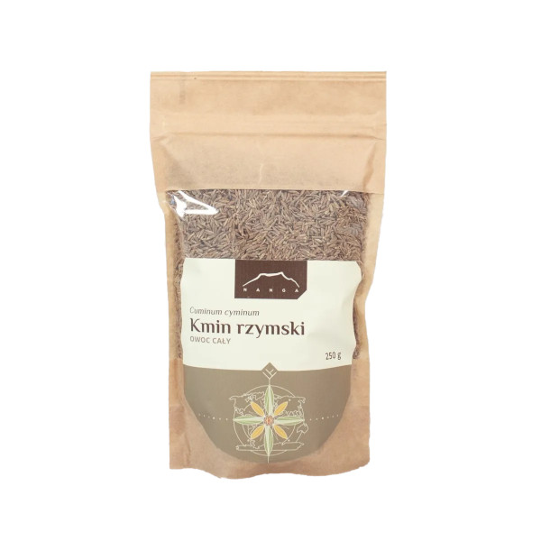 Kmin rzymski (Cuminum cyminum) – zwany także kuminem, to przyprawa stanowiąca nasiona rośliny Cuminum cyminum, obecnie spotykanej wyłącznie w uprawie w różnych częściach świata. Kumin występuje powszechnie w kuchni tureckiej, arabskiej i azjatyckiej. Przyprawa ta posiada wyrazisty, ziemisto-ostry smak z nieco słodkawą nutą. Wchodzi w skład popularnej mieszanki curry. Już kilka ziarenek potrafi nadać zupełnego nowego charakteru naszym daniom. Intensywny aromat kuminu wynika z wysokiej zawartości olejku eterycznego. Obok niego w nasionach kminu znajdziemy, m.in. tłuszcze, żywice, śluzy, czy taniny. W celu uzyskania pełni smaku warto przed użyciem nasiona delikatnie podprażyć, a następnie zmielić. Kmin rzymski wspaniale wzbogaca dania mięsne i warzywne. Dodany do potraw zabiera nas w orientalną, smakową podróż.