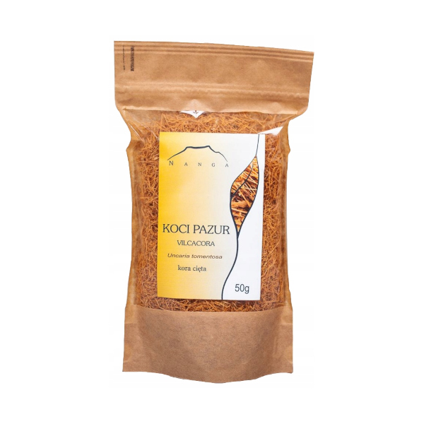 Vilcacora (Uncaria tomentosa) – czepota puszysta, zwana także kocim pazurem, jest to pnącze należące do rodziny marzanowatych, o sercowatych liściach i biało-żółtych kwiatach. Jej naturalnym środowiskiem są amazońskie lasy, jednak obecnie można ją spotkać również na pozostałych terenach Ameryki Południowej oraz w Ameryce Środkowej. Jako surowiec zielarski wykorzystywane są korzenie, pędy i liście. Czepota puszysta jest bogata w różnego rodzaju alkaloidy, np. alkaloidy indolowe i oksoindolowe, które wykazują wyraźnie korzystny wpływ na pracę układu odpornościowego. Obok nich obecne są m.in.: flawonoidy, glikozydy i triterpeny. Rdzenni mieszkańcy Amazonii znają vilcacorę od ponad 2000 lat i stosują ją jako środek medyczny. Wierzono tam, że spożywanie jej wydłuża czas życia, wzmacnia wytrzymałość fizyczną oraz dodaje energii. Koci pazur zalecany jest osobom w okresach rekonwalescencji jako środek wspierający naturalną odporność, a dodatkowo działający adaptogennie.