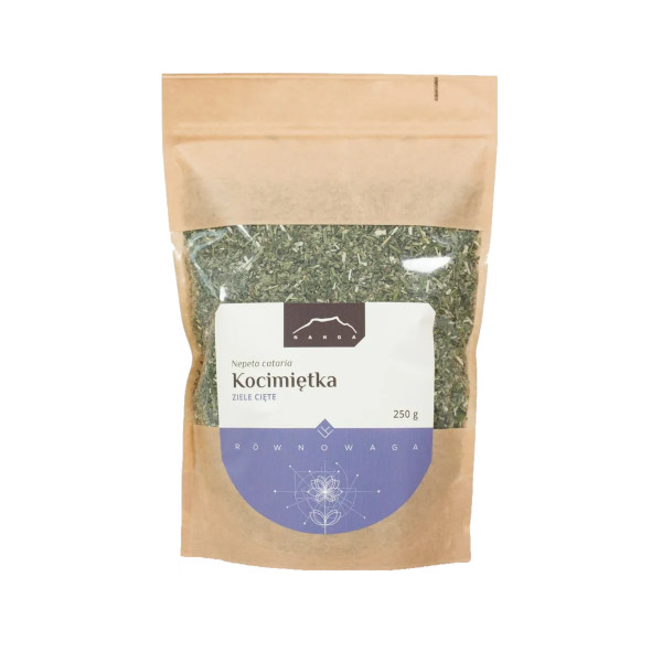 Kocimiętka właściwa (Nepeta cataria) – drobna roślina rosnąca zwykle w większych kępach, wytwarzająca sercowate, ząbkowane liście oraz fioletowe lub białe kwiaty. Występuje powszechnie w Europie, a także w wielu miejscach Azji i Ameryki Północnej. Surowcem roślinnym jest ziele, w którym obecny jest nepetalakton, odpowiadający za główne działanie kocimiętki oraz olejki eteryczne nadające roślinie przyjemny, miętowo-cytrynowy zapach. Kocimiętkę stosowano dawniej w medycynie ludowej zarówno w celach relaksacyjnych, jak i dla poprawy trawienia czy w celu złagodzenia nadmiernych krwawień miesiączkowych. Nazwa rośliny wywodzi się z działania, jakie wywiera na koty – jej zapach sprawia, że tarzają się po ziemi, gryzą, ślinią się i mruczą, wyglądając przy tym na zadowolone. Aromatyczny napar z kocimiętki łagodzi napięcia w ciele, uspokaja umysł i podnosi samopoczucie. Dodatkowo przyczynia się do lepszej regeneracji organizmu podczas snu. Wielu użytkowników informuje także o wpływie tego ziela na sny – podobno czyni je ciekawszymi i barwniejszymi.