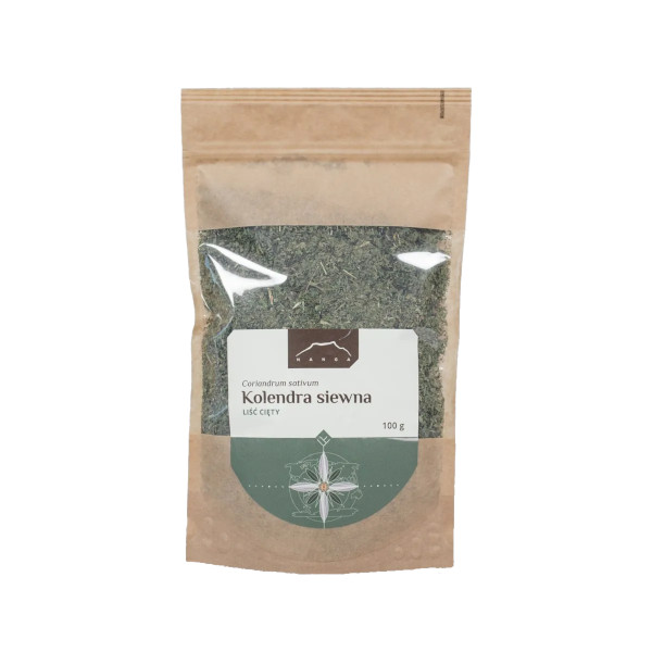 Kolendra siewna (Coriandrum sativum) – roślina z rodziny selerowatych, osiągająca do 70 cm wysokości. Wytwarza trójklapowe, postrzępione liście i owoce w postaci rozłupek. Cała roślina wydziela charakterystyczny zapach. Pochodzi z krajów o ciepłym klimacie, ale jest chętnie uprawiana także w Polsce. Jako surowiec zielarski pozyskiwane są zarówno liście, jak i owoce kolendry. Liście zawierają w sobie całą gamę flawonoidów oraz cenne aminokwasy. Znajdziemy w nich duże ilości witaminy K, A i C, a także składniki mineralne: potas, wapń, magnez i żelazo. Pierwsze wzmianki o kolendrze pochodzą z okresu przed naszą erą. W czasach antycznych kolendra wykorzystywana była do celów medycznych. W wielu krajach zdobyła popularność jako niezastąpiona przyprawa dodawana do orientalnych potraw. Liście kolendry dobrze komponują się z daniami kuchni meksykańskiej, indyjskiej i bliskowschodniej. Można zastosować je również w postaci naparów, ponieważ kolendra oprócz intensywnej w smaku przyprawy, stanowi także środek poprawiający apetyt, wpływający korzystnie na pracę układu pokarmowego.