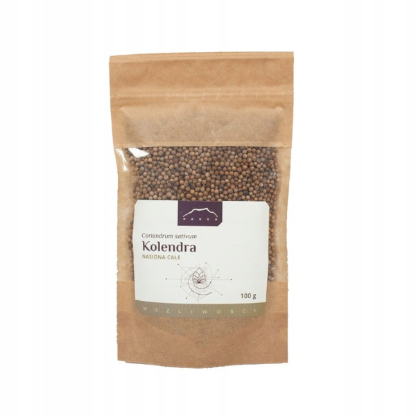 Kolendra (nasiona) – silnie aromatyczna przyprawa wyróżniająca się korzennym, orientalnym smakiem z lekko orzeźwiającą nutą. Pochodzi z regionów Morza Śródziemnego, ale obecnie jest chętnie uprawiana na całym świecie. To nieodłączny element kuchni indyjskiej, tajskiej, arabskiej i chińskiej. Kolendra jest bogata w olejki eteryczne, które nie tylko odpowiadają za jej wyjątkowy aromat, ale też pozytywnie wpływają na pracę układu pokarmowego. Już w starożytnym Egipcie znano jej nasiona i wykorzystywano w celach kulinarnych i medycznych. Stanowi ona składnik wielu znanych mieszanek, takich jak curry czy garam masala. To doskonała przyprawa do zup, gulaszy, potraw mięsnych i rybnych. Sprawdza się także jako dodatek do duszonych warzyw lub wyrobów piekarniczych. Warto rozdrabniać jej nasiona zaraz przed dodaniem do potraw, aby wydobyć z niej pełnię smakowego potencjału.