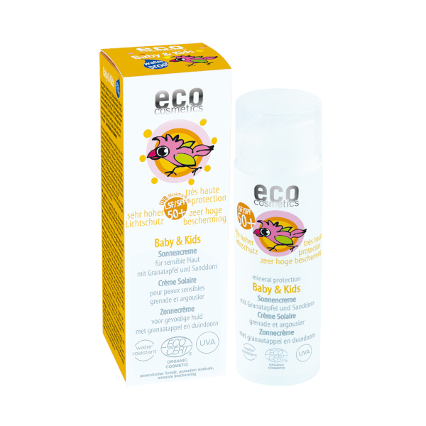Krem na słońce z mineralnymi filtrami przeciwsłonecznymi chroni delikatną skórę niemowląt i dzieci przed promieniowaniem UVA i UVB. Działa natychmiast po nałożeniu. Jest wodoodporny, a więc idealny dla małych amatorów kąpieli wodnych. Tonowany (w kolorze opalenizny) przez wysoką zawartość rokitnika. Owoc granatu, oliwka z oliwek i olej macadamia zapewniają skórze odpowiednią pielęgnację i nawilżenie. Ekstrakt z rokitnika i olej z wiesiołka z upraw ekologicznych działają ochronnie na szczególnie wrażliwą skórę.