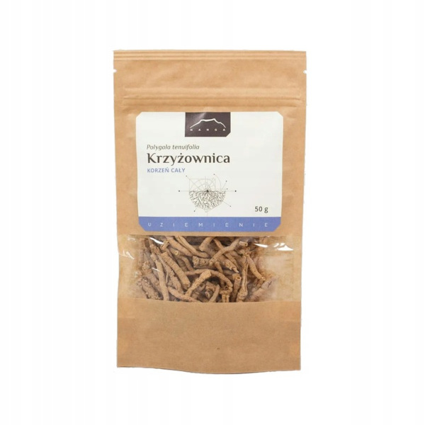 Krzyżownica cienkolistna (Polygala tenuifolia) – wieloletnia roślina o podłużnych, cienkich liściach i małych, fioletowych kwiatach. Rośnie na obszarach Północnej Azji, głównie w Chinach, Mongolii i Rosji. Jako surowiec zielarski wykorzystuje się korzeń krzyżownicy, zawierający aktywne składniki, takie jak: saponiny, żywice oraz tenuifoliny. Roślina ta uważana jest za jedno z 50 najważniejszych ziół w Tradycyjnej Medycynie Chińskiej. Stosowana jako środek zwiększający możliwości poznawcze organizmu, wzmacniający koncentrację i pamięć. Obecnie wiadomo, że to zastosowanie miało jak najbardziej uzasadnienie, ponieważ składniki zawarte w Polygala tenuifolia wspierają prawidłową pracę układu nerwowego i wzmacniają odporność organizmu na czynniki stresowe. Ponadto krzyżownica oczyszcza organizm, reguluje wydzielanie śluzów oraz wspomaga prawidłowy metabolizm.