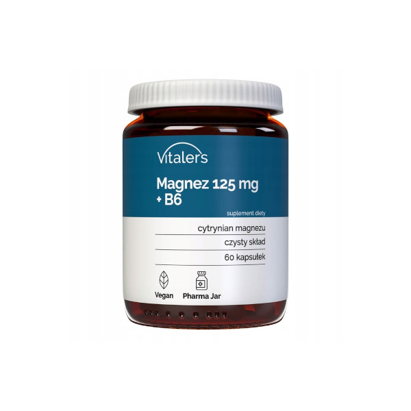 Vitaler's Magnez 125 mg + B6 to suplement diety, który odpowiada wytycznym diety wegańskiej i wegetariańskiej. Dzięki zawartej w produkcie witaminie B6 wchłanianie magnezu z przewodu pokarmowego zwiększa się o 20–40%