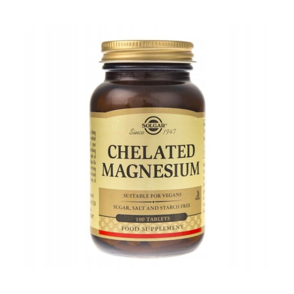 Chelated Magnesium marki Solgar to suplement diety zawierający magnez w postaci 100% chelatu aminokwasowego. Chelaty aminokwasowe charakteryzują się najlepszą wchłanialnością.