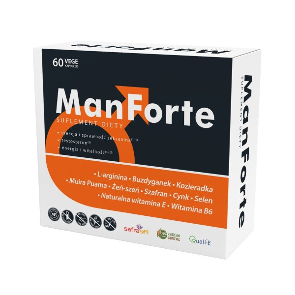 Suplement diety ManForte zawiera dużą porcję L-argininy, ekstrakt buzdyganka naziemnego – który wspomaga popęd i sprawność seksualną, ekstrakt z żeń-szenia – który pomaga w utrzymaniu optymalnej wytrzymałości, witalności i dobrego samopoczucia fizycznego i psychicznego.