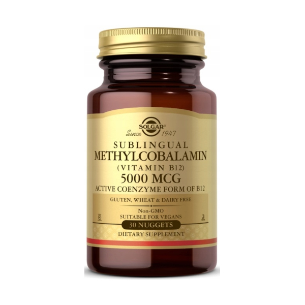 Metylokobalamina to aktywna forma witaminy B12. Jest naturalnym koenzymem występującym w organizmie człowieka. Dostarczenie porcji produktu Solgar zawierającego 5000 mikrogramów witaminy B12 pod postacią metylokobalaminy oznacza, że nie musi on zostać przekształcony aby stał się metabolicznie aktywny. W tej postaci jest bioidentyczny dla jednej z dwóch aktywnych form (druga to adenozynokobalamina) występujących w organizmie.