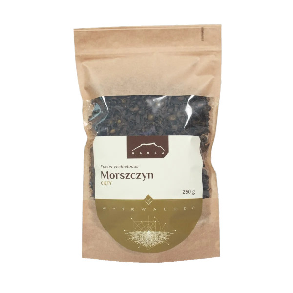 Morszczyn pęcherzykowaty (Fucus vesiculosus) – nazywany także kelpem, to glon morski należący do brunatnic. Charakteryzuje się oliwkową plechą, która pokryta jest licznymi pęcherzykami. Spotykany jest zwykle w chłodniejszych strefach Oceanu Atlantyckiego i Spokojnego oraz w Bałtyku i Morzu Północnym. Morszczyn znany jest z wysokiej zawartości jodu, ale obok niego obecne są także inne składniki mineralne: wapń, potas, fosfor, siarka, żelazo, cynk. Stanowi on źródło wielu cennych witamin oraz takich substancji aktywnych, jak: polisacharydy, kwas alginowy, fukoidyna, mannitol, lamiryna, liczne antyoksydanty i kwasy tłuszczowe. Od setek lat morszczyn pęcherzykowaty jest ważnym elementem codziennej diety ludności nadmorskiej. Tradycyjnie stosowany był jako środek regulujący perystaltykę jelit i wspomagający odchudzanie. Przygotowywano z niego również okłady kojące skórę. Morszczyn to dobre źródło błonnika wspierającego prawidłową pracę jelit i układu pokarmowego. Zawarty w nim jod korzystnie wpływa na metabolizm, a jego odpowiedni poziom w organizmie odpowiada za optymalną pracę gruczołu tarczycy. Produkt skierowany jest do osób, które pragną dostarczyć swojemu organizmowi dodatkowej dawki jodu oraz innych cennych składników o korzystnym wpływie na zdrowie.