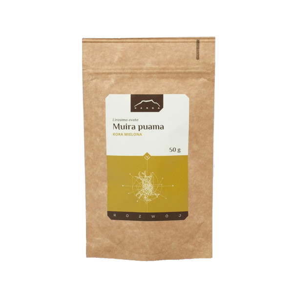 Muira Puama (Lirosima ovata) – drzewo z rodziny oliwkowatych, osiągające do 5 metrów wysokości. Naturalnie występuje w Brazylii, Kolumbii, Wenezueli oraz Peru. Cennym surowcem zielarskim jest kora drzewa muira puama, zawierająca takie substancje aktywne, jak: alkaloidy, kwasy tłuszczowe, kumaryna, fitosterole oraz olejki eteryczne. Roślina ta nazywana jest „drzewem potencji”, a to za sprawą jej właściwości podnoszących libido u mężczyzn i kobiet oraz wzmacniających sprawność seksualną u mężczyzn. Wśród ludności południowoamerykańskiej od wieków uważana jest za jeden z najlepszych naturalnych afrodyzjaków. Jednak oprócz głównego działania, muira puama wpływa także na wzrost ogólnej witalności oraz wspiera prawidłowe funkcjonowanie układu nerwowego. To egzotyczne ziółko polecane jest osobom pragnącym zwiększyć poziom zadowolenia ze swojego życia erotycznego, a przy okazji zadziałać wzmacniająco na organizm.