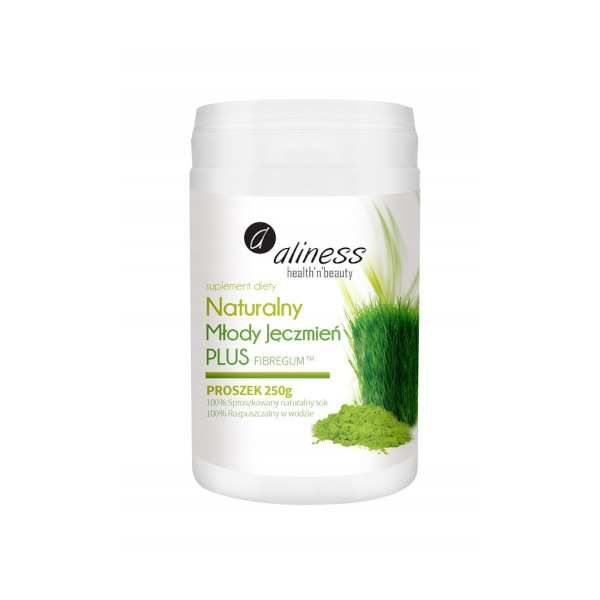 Jak stosować Naturalny Młody jęczmień Aliness: Marka Aliness oferuje zarówno formę tabletek (Naturalny Młody Jęczmień 1800), jak i proszku (Naturalny Młody Jęczmień PLUS Fibregum). Proszek z młodego jęczmienia można dodawać do posiłków: koktajli owocowych, warzywnych, musli, jogurtów, zup lub rozpuścić w wodzie i wypić.