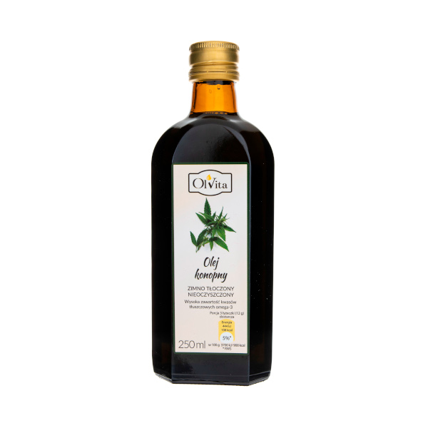 Olej konopny zimnotłoczony Olvita 250ml – Tłoczony na zimno, polski olej z nasion konopi siewnej.