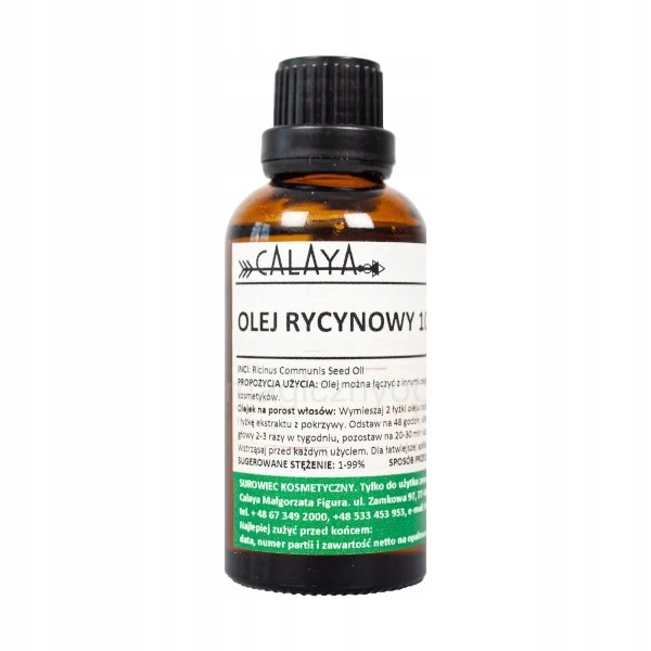 Olej rycynowy kosmetyczny zimnotłoczony 50ml jest bezbarwny, bezzapachowy i gęsty. Kolor i zapach oleju może nieznacznie różnić się w kolejnych partiach produktu
