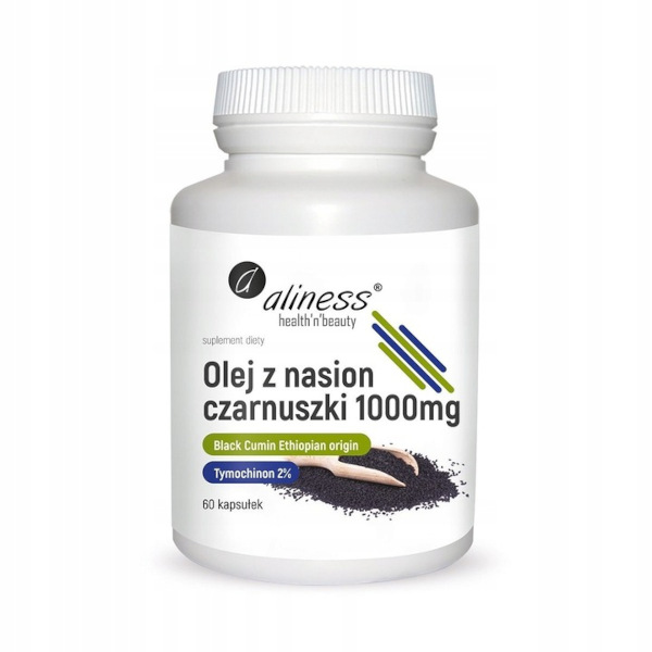 Olej z nasion czarnuszki Aliness to najwyższej jakości olej z nasion czarnuszki pochodzenia etiopskiego. Pochodzenie Etiopskie nasion gwarantuje znacznie wyższą zawartość tymochinonu w produkcie (aż 2%) niż w przypadku innych odmian oraz zachowuje wszystkie składniki odżywcze nasion. Zawiera wysoką ilość kwasu oleinowego, linolowego oraz palmitynowego.