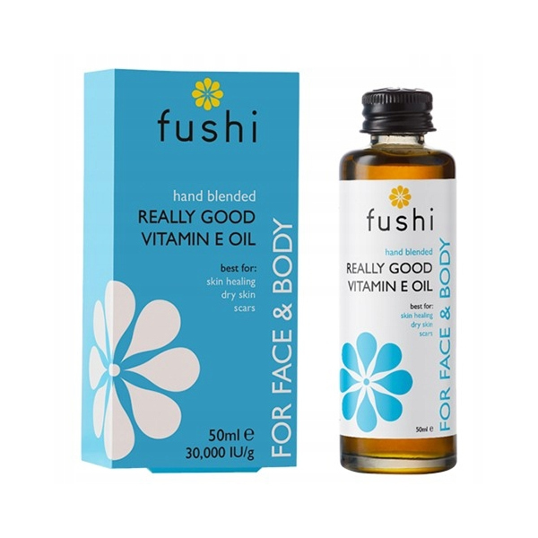 Fushi's Really Good Vitamin E Oil zawiera ekologiczne,na zimno tłoczone oleje: jojoba, olej z pszenicy zwyczajnej, olej z nasion dzikiej maliny i ze skórki słodkiej pomarańczy .