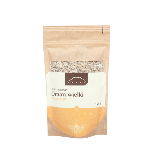 Oman wielki (Inula helenium) – roślina z rodziny astrowatych, osiągająca 1-2 metry wysokości, wytwarzająca lancetowate liście oraz duże, żółte koszyczki kwiatowe. Naturalnie występuje w Europie i Azji Zachodniej. Surowcem zielarskim jest korzeń, zawierający szereg składników aktywnych, takich jak: inulina (ok. 40%), olejki eteryczne, śluzy, fitosterole, witaminę E i sole mineralne. W czasach antycznych korzeń omanu stanowił ważny element medycyny ludowej, a także był uwielbianym przysmakiem na rzymskich dworach. Zasmażano go razem z cukrem, a w późniejszym okresie przygotowywano z niego zdrowotne wino. Oman wzmacnia mechanizmy obronne skierowane wobec bakterii, wirusów, grzybów i pasożytów oraz wykazuje działanie wykrztuśne. Ponadto pobudza trawienie ze względu na słodko-gorzki smak. Jednak najważniejsza moc tego zioła skierowana jest na zdrowie układu oddechowego. Przy regularnym stosowaniu korzeń omanu ułatwia oddychanie, pomaga oczyścić drogi oddechowe i odetchnąć pełną piersią. Świetnie sprawdzi się na wędrówkach wysokogórskich, przy niedrożności dróg oddechowych, w przypadku uczucia ciężkości po posiłku oraz w okresie obniżonej odporności.