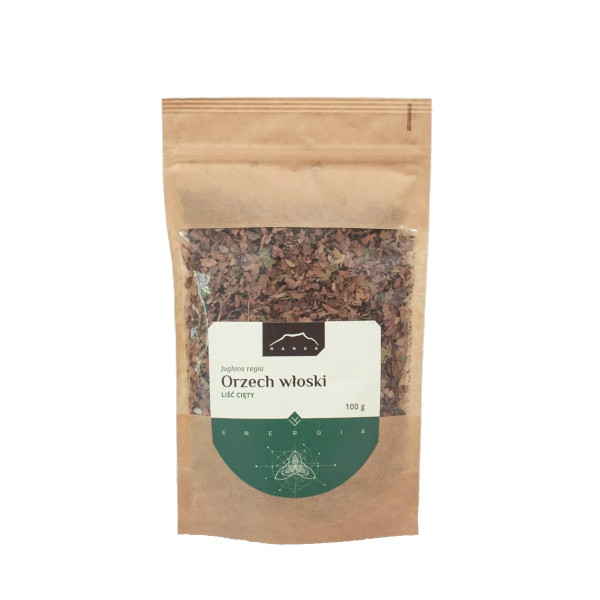 Orzech włoski (Juglans regia) – szeroko rozrastające się drzewo, wytwarzające duże, złożone liście oraz odżywcze, smaczne owoce, powszechnie nazywane orzechami. Można go spotkać w stanie dzikim w południowo-wschodniej Europie, szczególnie na Bałkanach, a także w Azji. Oprócz owoców ważnym surowcem zielarskim są liście orzecha włoskiego. W ich składzie znajdziemy m.in.: juglon i jego pochodne, garbniki, flawonoidy, kwasy organiczne, triterpeny, witaminy i składniki mineralne. Substancje te wykazują działanie przeciwdrobnoustrojowe oraz optymalizujące odpowiedź przeciwzapalną organizmu. Po łacinie słowo regia oznacza „królewski” i nawiązuje do wspaniałych cech tej rośliny, która zarówno obdarza pożywieniem, jak i cennymi właściwościami zdrowotnymi. Dawniej w medycynie ludowej stosowano liście dla łagodzenia ukąszeń owadów, a także do odstraszania pcheł. Wyciągi z liści orzecha włoskiego świetnie sprawdzają się zastosowane zewnętrznie – do odkażania zmian skórnych oraz jako środek przyspieszający gojenie się ran i podrażnień.