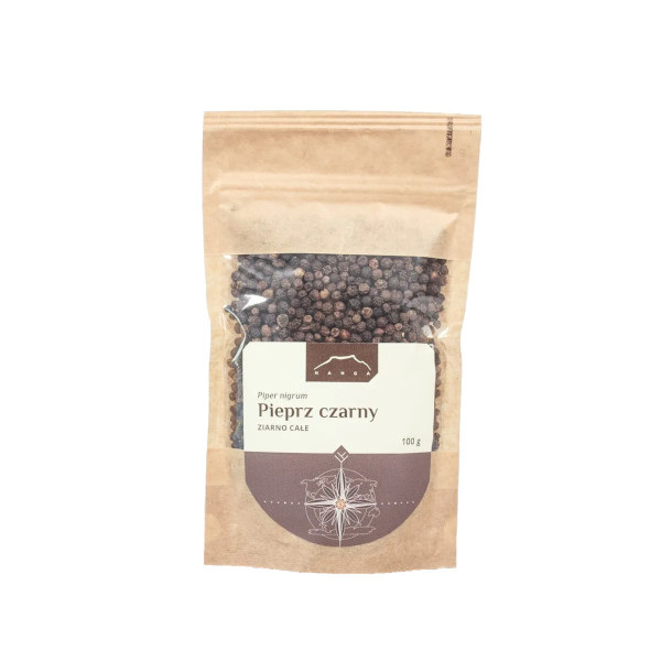 Pieprz czarny (Piper nigrum) – jedna z najczęściej używanych przypraw na świecie, obecna w prawie każdej kuchni. Pieprz czarny występuje zwykle pod postacią czarnych kuleczek – stanowią one owoce tropikalnego pnącza, wywodzącego się z Indii. Pieprz czarny dodawany do potraw nadaje im unikatowej ostrości. Oprócz walorów smakowych dostarcza też wartościowych substancji aktywnych: olejek eteryczny, alkaloidy (m.in. piperynę) oraz flawonoidy (kempferol i kwercetynę). Dzięki tym składnikom wspiera prawidłowe trawienie, korzystnie wpływa na układ krążenia i przyczynia się do wzmocnienia naturalnej odporności. Dawniej pieprz czarny stanowił wysoce ceniony surowiec – w niektórych krajach był nawet walutą wymienianą na złoto. Obecnie jest łatwo dostępny, ale wciąż trudno wyobrazić sobie bez niego kulinarne rewolucje. Komponuje się z prawie każdym daniem. Można dodawać go do sałatek, zup, warzyw i mięs. Odważni lubują się także w deserach czy czekoladach z dodatkiem pieprzu. Dla uzyskania pełni smakowego potencjału zaleca się mielić pieprzowe kuleczki bezpośrednio przed użyciem. Oferowany przez nas pieprz czarny jest surowcem najwyższej jakości sprowadzanym z Wietnamu.