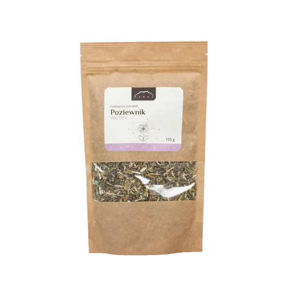 Poziewnik szorstki (Galeopsis tetrahit) – roślina posiadająca lancetowate liście o delikatnie karbowanych brzegach oraz białe lub różowe kwiaty w kątach liści. Naturalnie rośnie w Europie i na północnych obszarach Azji. W zielarstwie wykorzystywane jest jej ziele zbierane w okresie kwitnienia. Ziele to zawiera w sobie około 6% garbników, flawonoidy, irydoidy, alkaloidy, saponiny, gorycze, kwasy organiczne oraz sole mineralne, zawierające 0,25% krzemionki. Już w starożytności poziewnik znajdował zastosowanie w medycynie naturalnej jako środek wspierający prawidłową pracę układu oddechowego oraz jako składnik okładów na rany, stłuczenia i opuchnięcia. Obecnie najbardziej ceniony jest za zawartość dobrze przyswajalnej krzemionki, która wykazuje regenerujący wpływ na różne tkanki naszego organizmu. Ziele to świetnie sprawdza się jako środek dbający o zdrowie skóry, włosów, stawów i kości. Korzystnie wpływa na drogi oddechowe, oczyszcza nerki i drogi moczowe oraz wspiera prawidłowe trawienie. Poziewnik pobudza procesy odbudowy tkanek, wzmacnia, koi, regeneruje. Wyciągi z ziela można spożywać, aby zadziałać wewnątrz organizmu lub zastosować je do przemywania podrażnionej skóry.