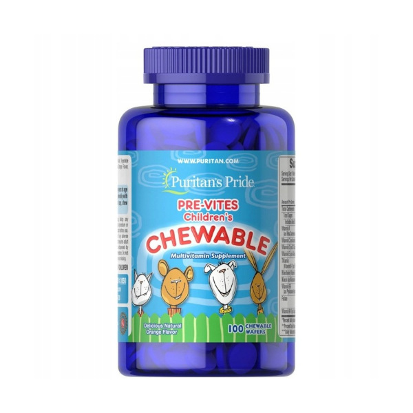 Pre-Vites Children's Multivitamin marki Puritan's Pride to suplement diety w postaci wafli do żucia o naturalnym pomarańczowym smaku zawierający zestaw witamin i minerałów stworzonych z myślą o aktywnych, rosnących dzieciach.